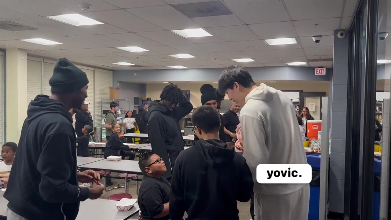 很受喜爱啊杨瀚森参与开拓者社区活动与小球迷握手互动