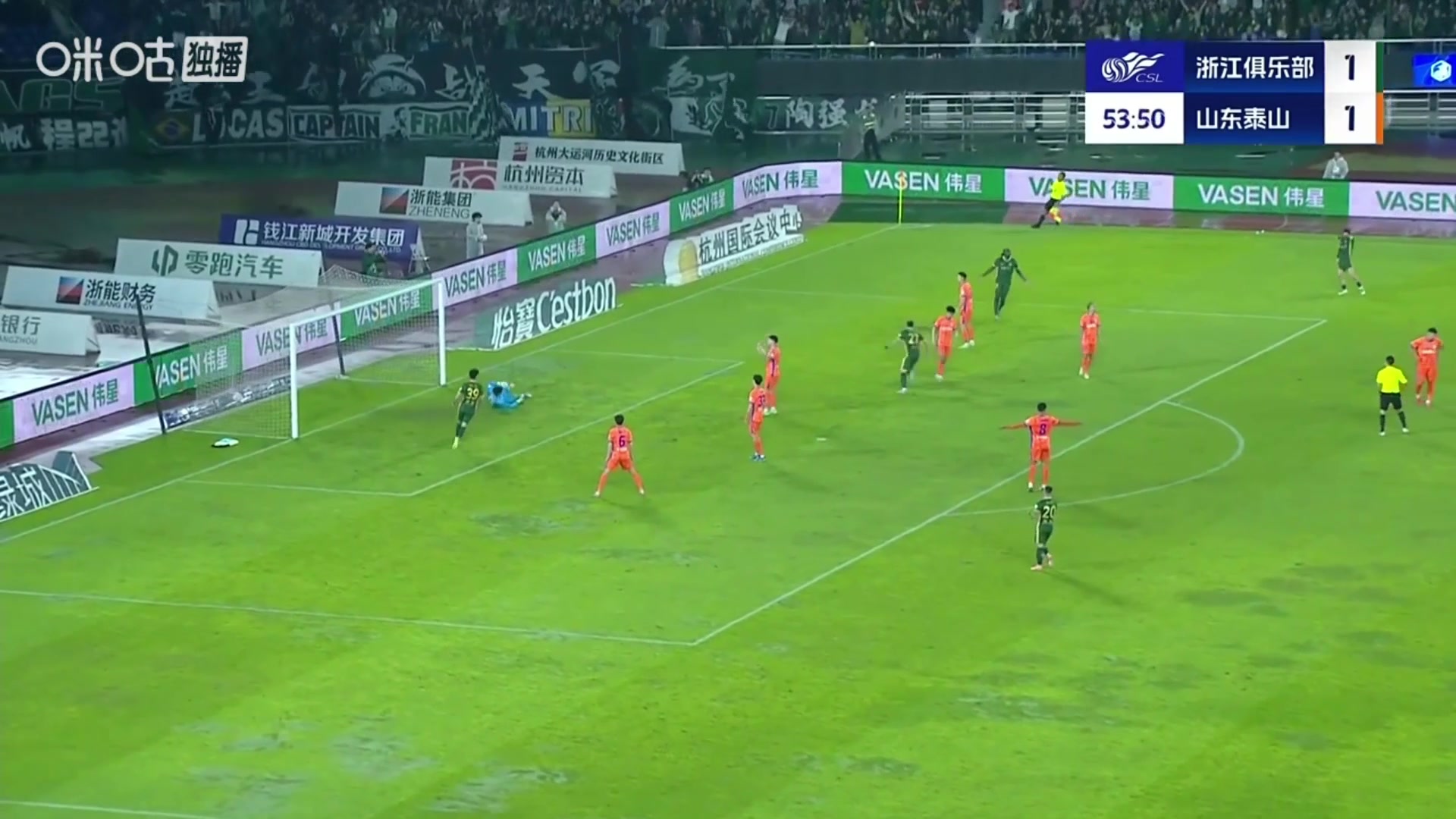 泰山先拔头筹黄政宇禁区外远射破门随后一路滑跪怒吼