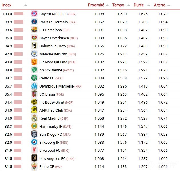 CIES评本赛季最具进攻性球队:拜仁居首,巴黎第二,巴萨第三
