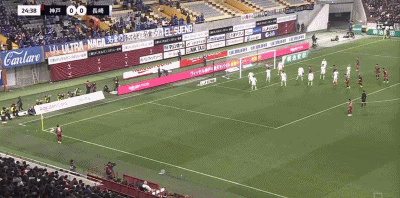 第42分钟,扩大比分,佐佐木大树头球得分,神户胜利船2-0