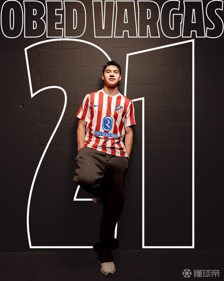 马竞官方:新援奥贝德-巴尔加斯将身穿球队的21号球衣
