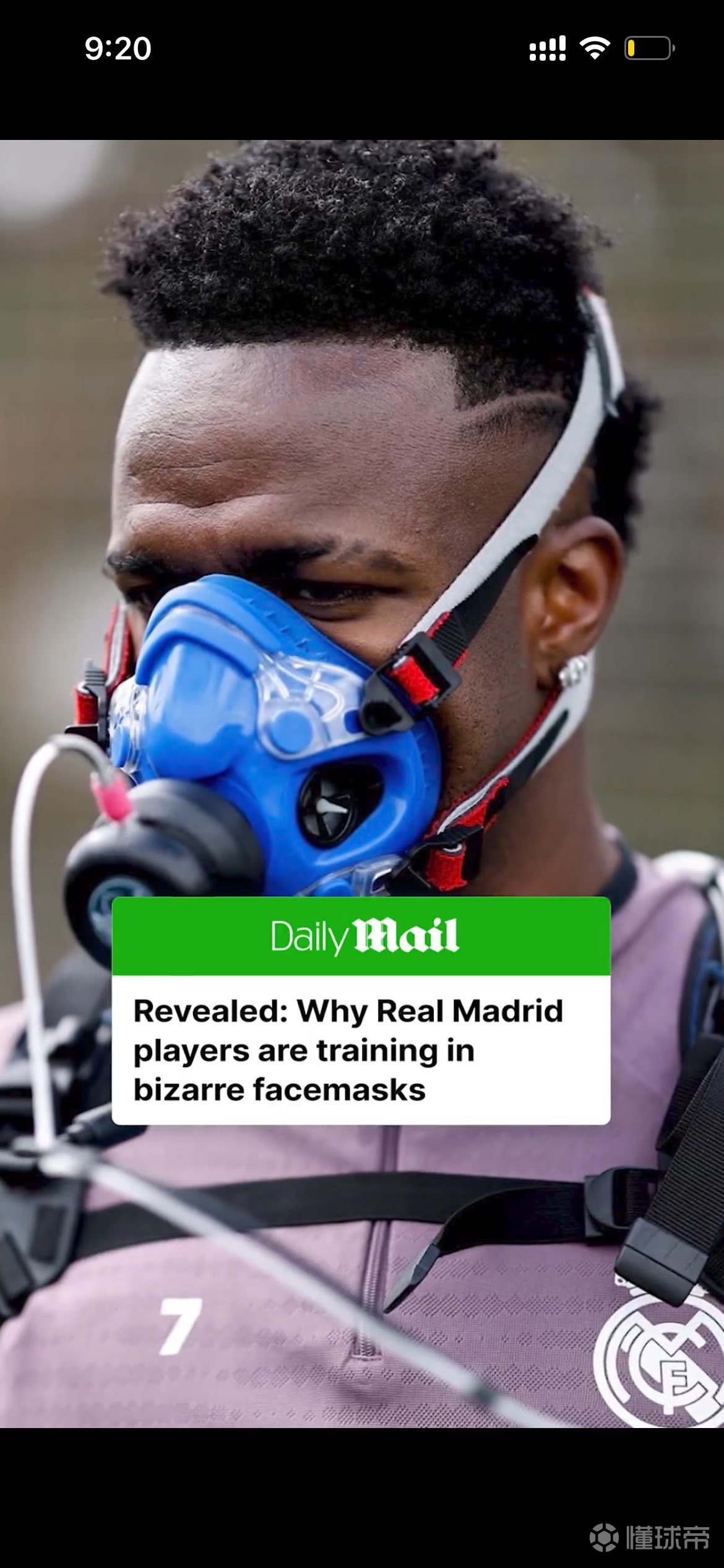 皇马球员近日被拍到戴着一种不同寻常的蓝色面罩进行训练