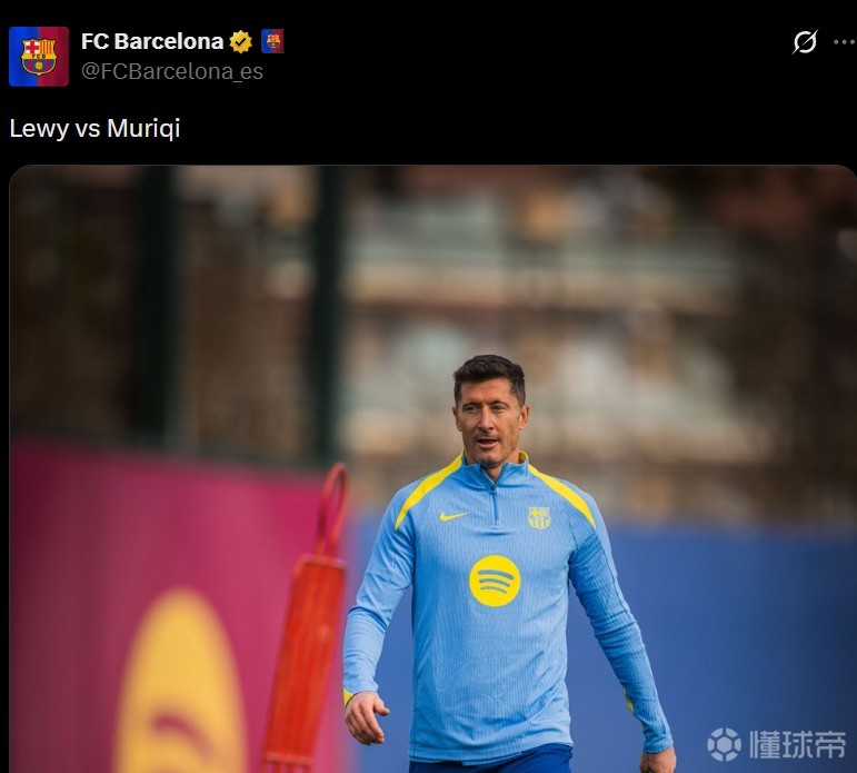 西甲第23轮巴塞罗那主场迎战马略卡,赛前巴萨官方在社交媒体上发布了一则造势帖,内容为“莱万vs穆里奇”,并配上了莱万的照片。