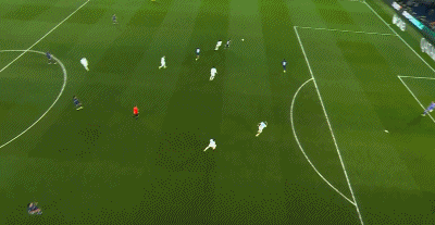 第54分钟,门德斯左路传中,杜埃抢点差点碰到皮球