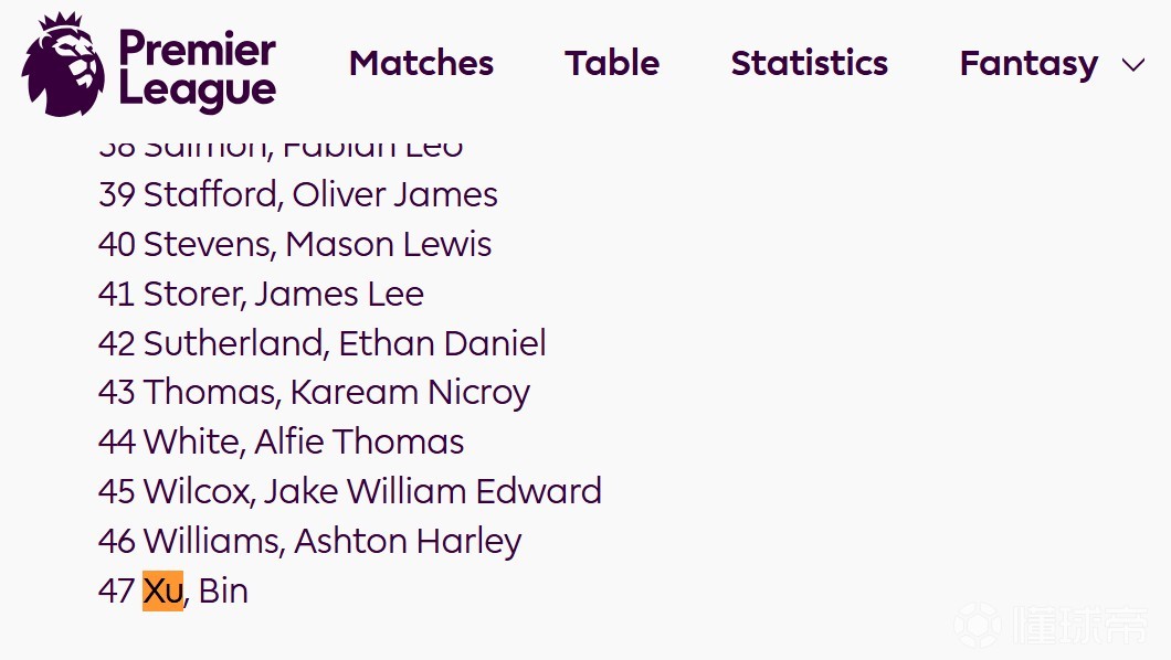 英超官网冬窗更新名单:徐彬出现在狼队U21球员阵容里