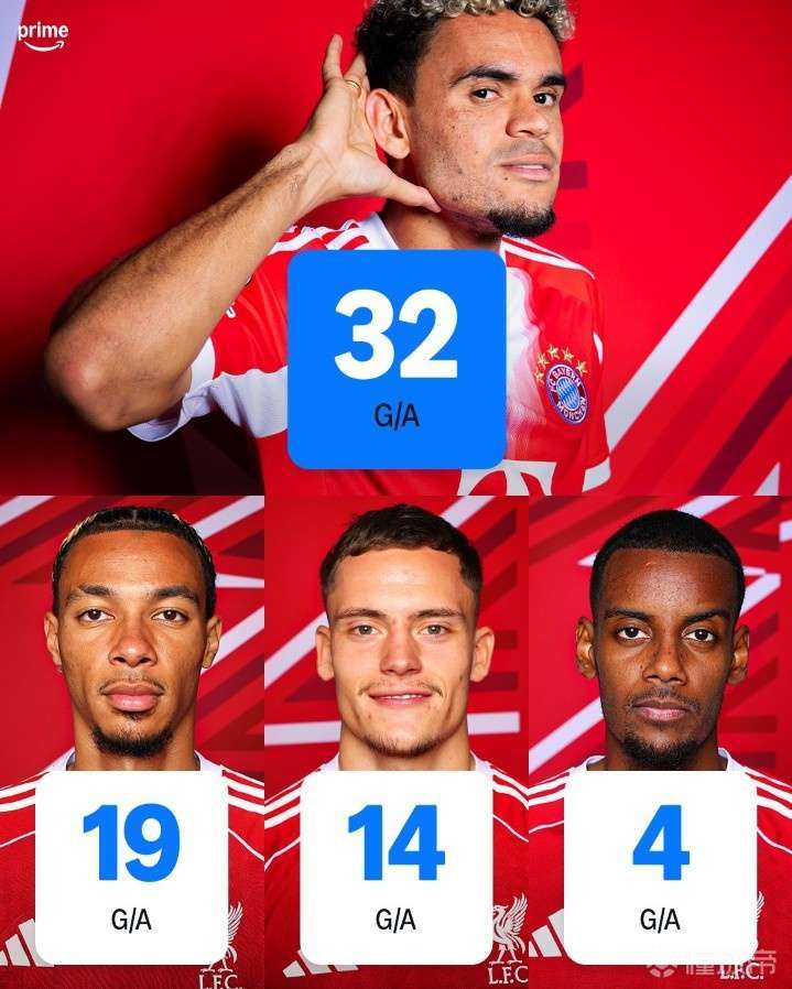 利物浦卖错人了??迪亚斯本季直接参与进球32个,利物浦三大新援一共37个prime sport统计,迪亚斯本赛季至今代表拜仁出场30次,打进18球助攻14次,直接参与进球32个。利物浦去年夏天引进到三位新援攻击手埃基蒂克、维尔茨、伊萨克直接参与进球之和为37个。其中埃基蒂克33场15球4助攻;维尔茨33场6球8助攻;伊萨克16场3球1助攻。