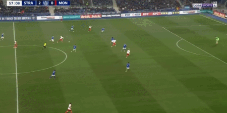 第55分钟,巴尔科直塞,恩西索晃开门将推射破门,斯特拉斯堡2-0摩纳哥