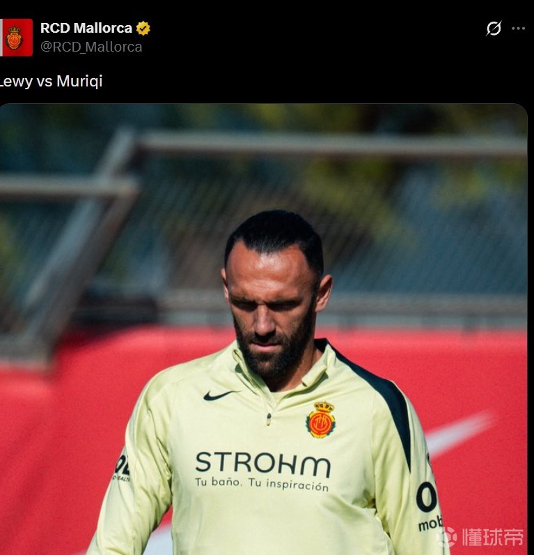 不久后,马略卡官方账号同样发帖并写上“莱万vs穆里奇”,配图换成了自家前锋穆里奇。