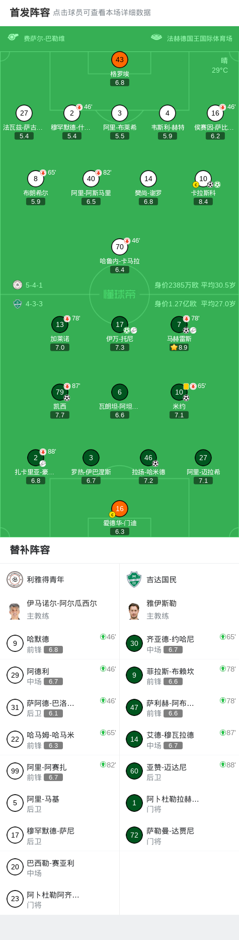 第6分钟,吉达国民球员拉扬-哈米德打入一球。