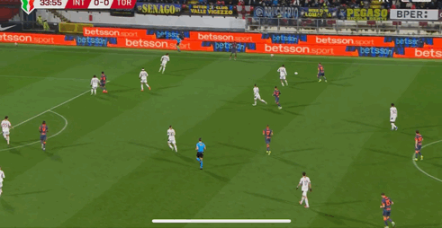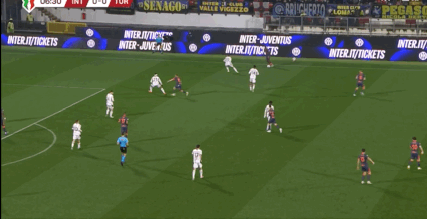 熟悉迪乌夫的内拉都知道,他被国米买来最大的标签就是其攻防转换时优秀的爆破能力,靠身体和速度强吃对手,但是静态时候的基本功较差,融入不了传导体系中,己方高位压迫时,容易被断球,反被打身后;