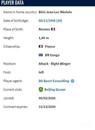 德转显示,恩科洛洛与北京国安签署了一份为期4年的合同。