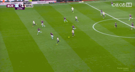 第12分钟,萨默维尔单刀面对门将,轻挑破门,伯恩利0-1西汉姆联