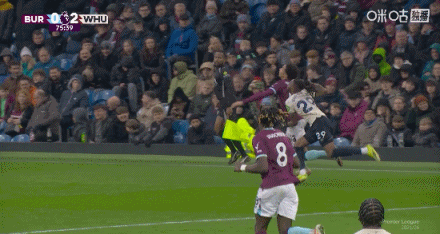 第25分钟,迪乌夫传中,卡斯特利亚诺斯头槌破门,伯恩利0-2西汉姆联